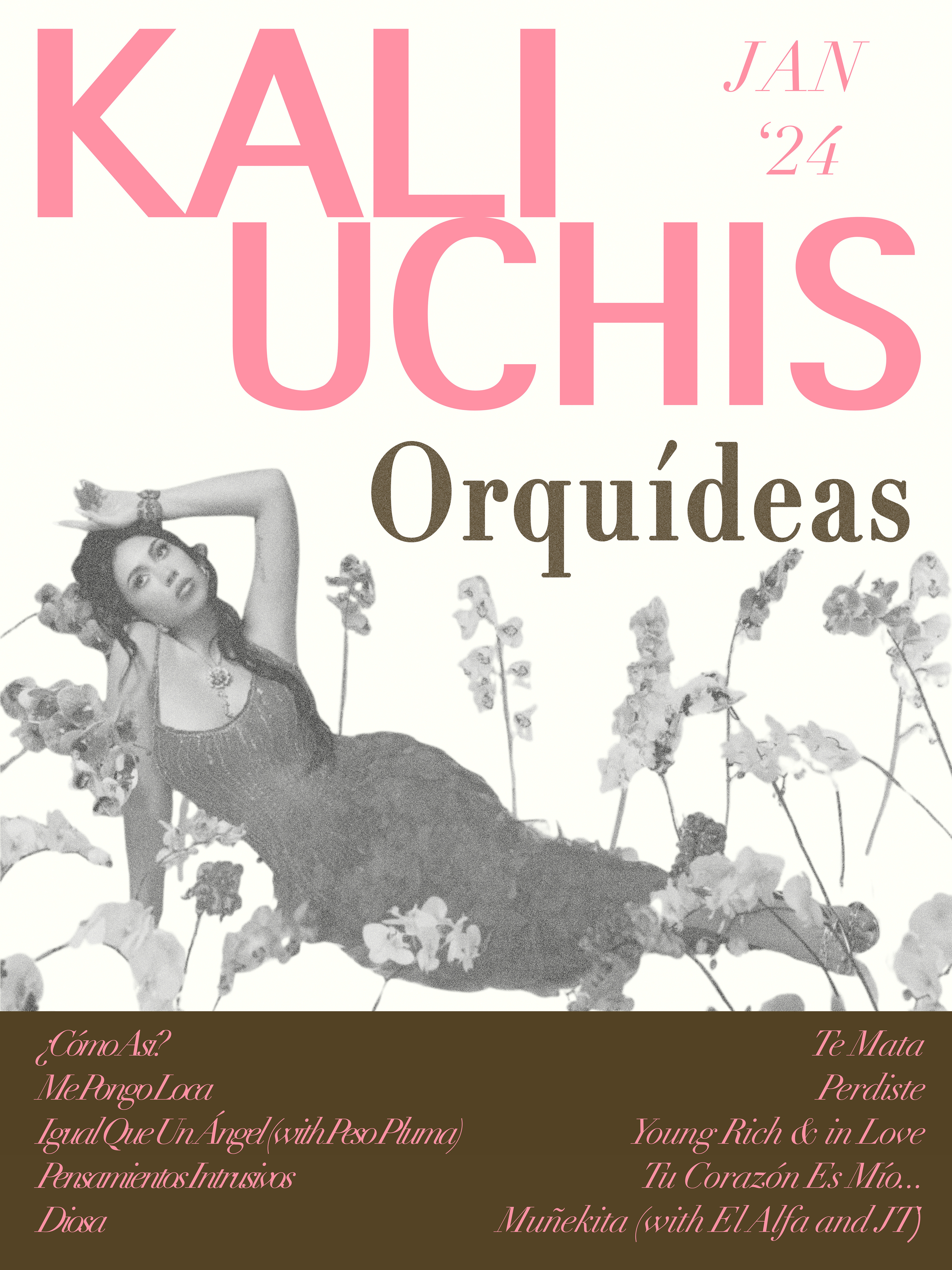 Kali Uchis music poster for Orquídeas album with song titles. Done on Adobe Illustrator