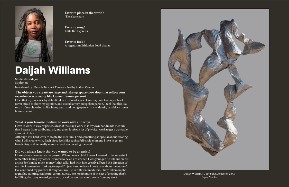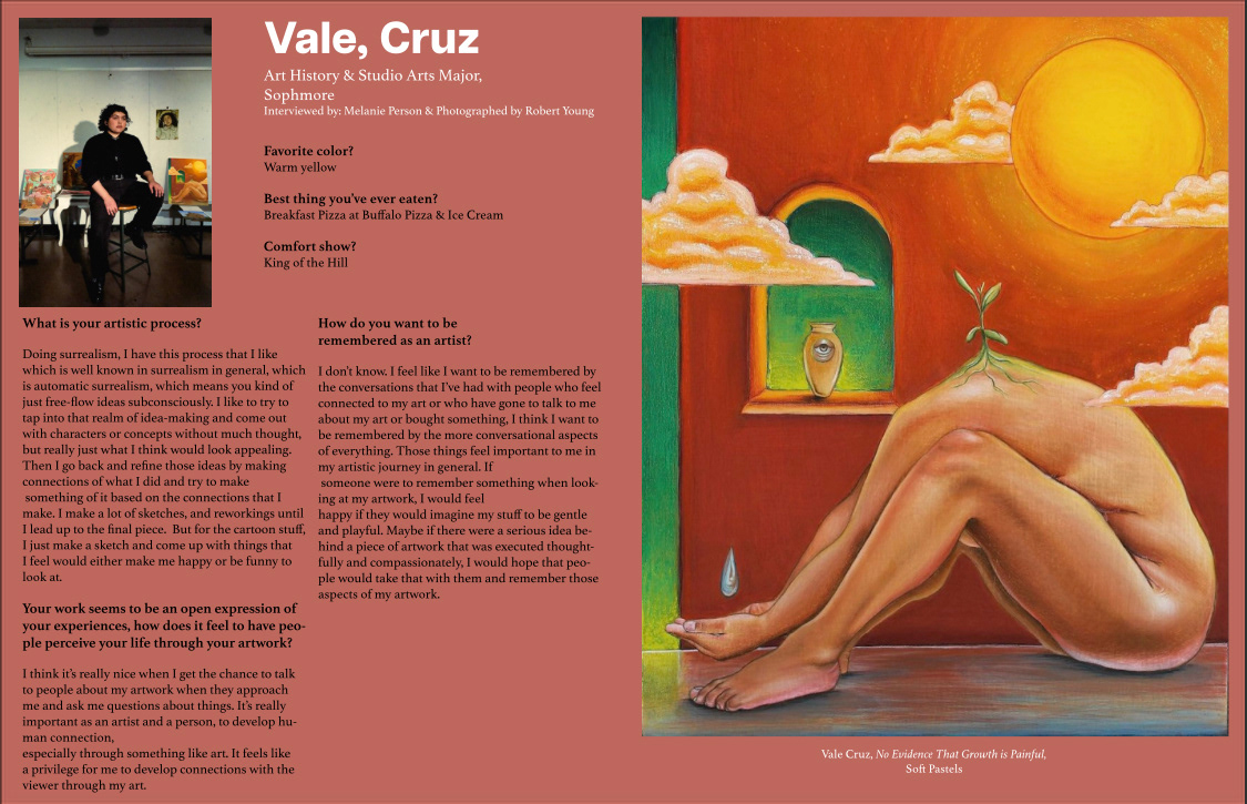 Artist two page magazine spread. Done on Adobe Indesign